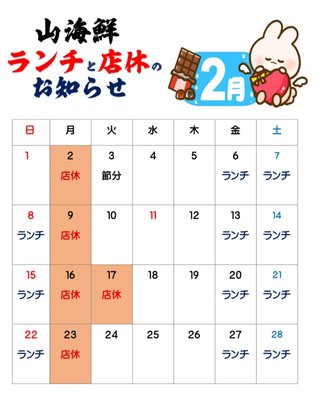 2月のカレンダー@練馬/桜台/海鮮/居酒屋/酒/2月のカレンダー️